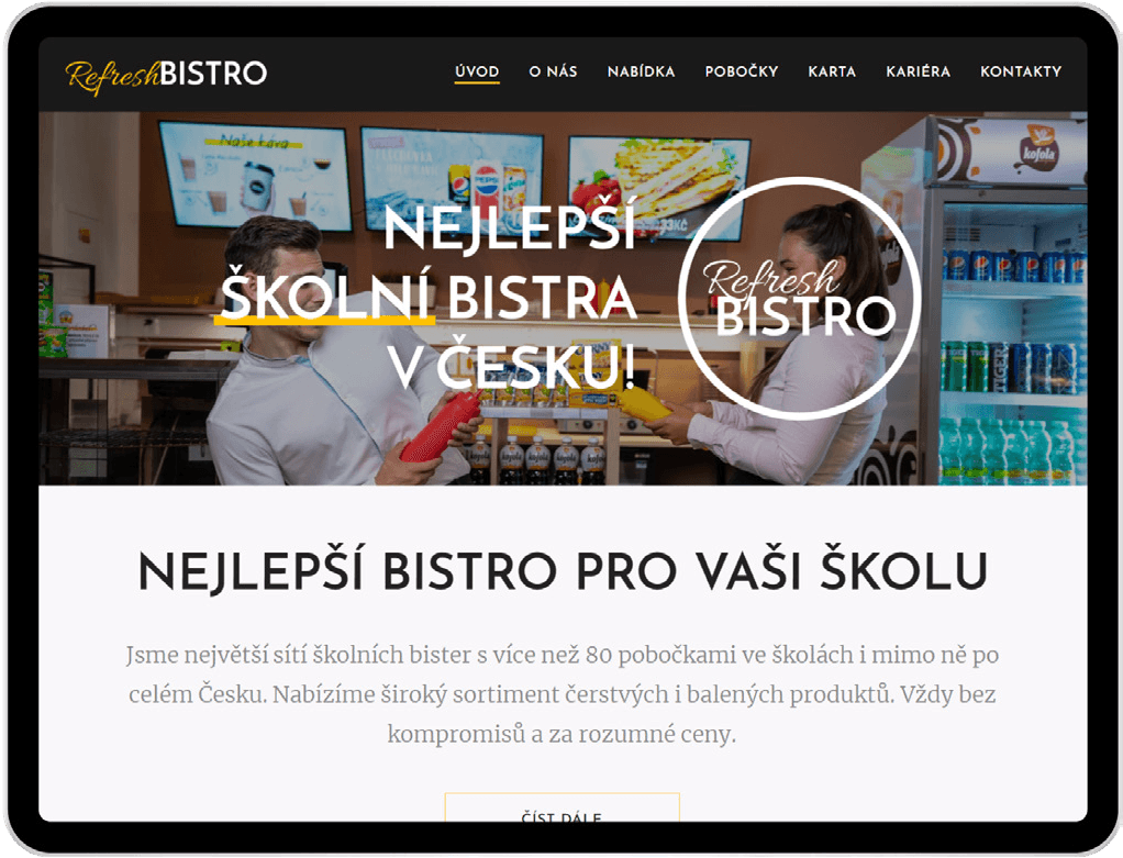 ReFresh Bistro je největší síť školních bister v Česku s více než 100 pobočkami. Nabízí čerstvé i balené produkty s důrazem na rychlou obsluhu a vysokou kvalitu a spolupracuje s ověřenými českými dodavateli. Franšízový model umožnil ReFresh Bistru rychlý růst, který stále úspěšně pokračuje rozšiřováním konceptu na školy po celé zemi.